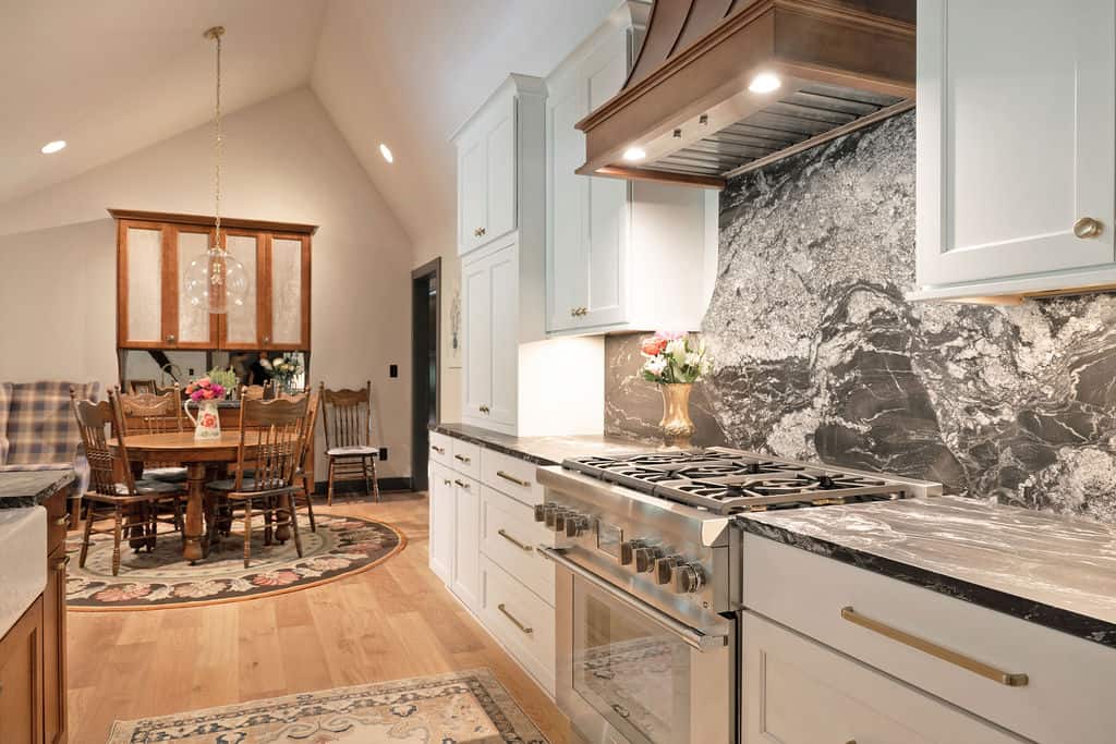 • A reworked floor plan that opened the dining room to the kitchen, creating better connection and flow.