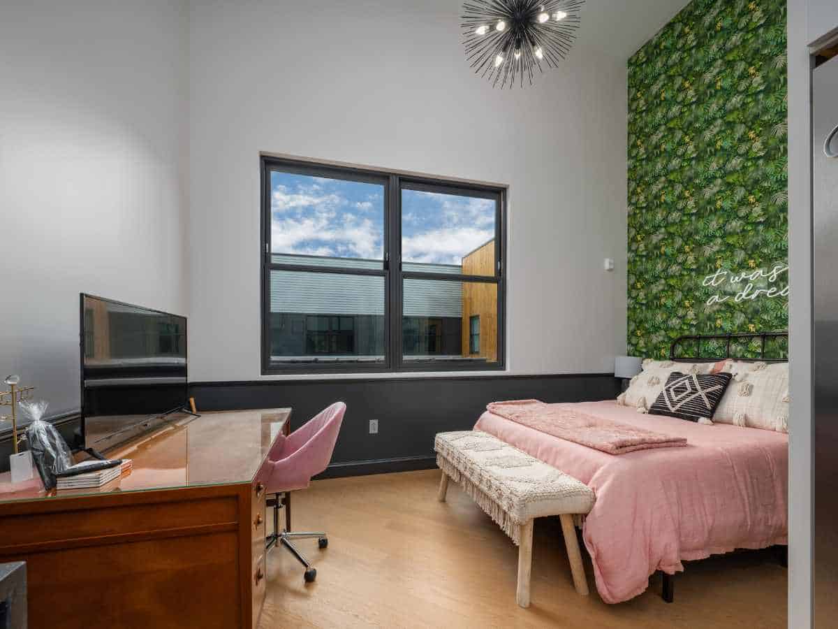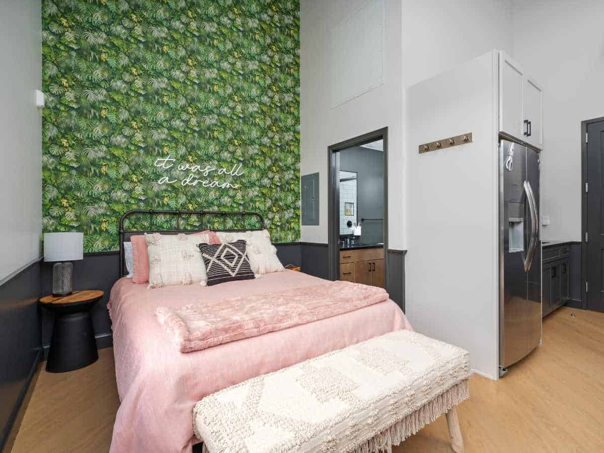 The approach was to design a space that felt playful, memorable, and instantly eye-catching. Leaning into a bold wallpaper and a neon sign helped create a clear focal point that photographed well and felt fun without being overdone. These choices were popular at the time, but they were also strategic, giving guests a moment they wanted to share and remember. By designing with both the listing photos and the guest experience in mind, the studio balanced personality with purpose in a way that supported visibility and bookings.